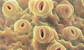 Photosynthesis is  is a process that converts carbon dioxide into organic compounds, especially sugars, using the energy from sunlight. Photosynthesis occurs in plants, algae, and many species of bacteria.In plants and algae photosynthesis uses carbon dioxide and water, releasing oxygen as a waste product.Some of the glucose produced by photosynthesis is used to provide food for the plant.Excess glucose is changed into starch and stored in the leaves as the main product of photosynthesis.Excess oxygen is released into the air through tiny pores called stomata found mainly on the underside of leaves.